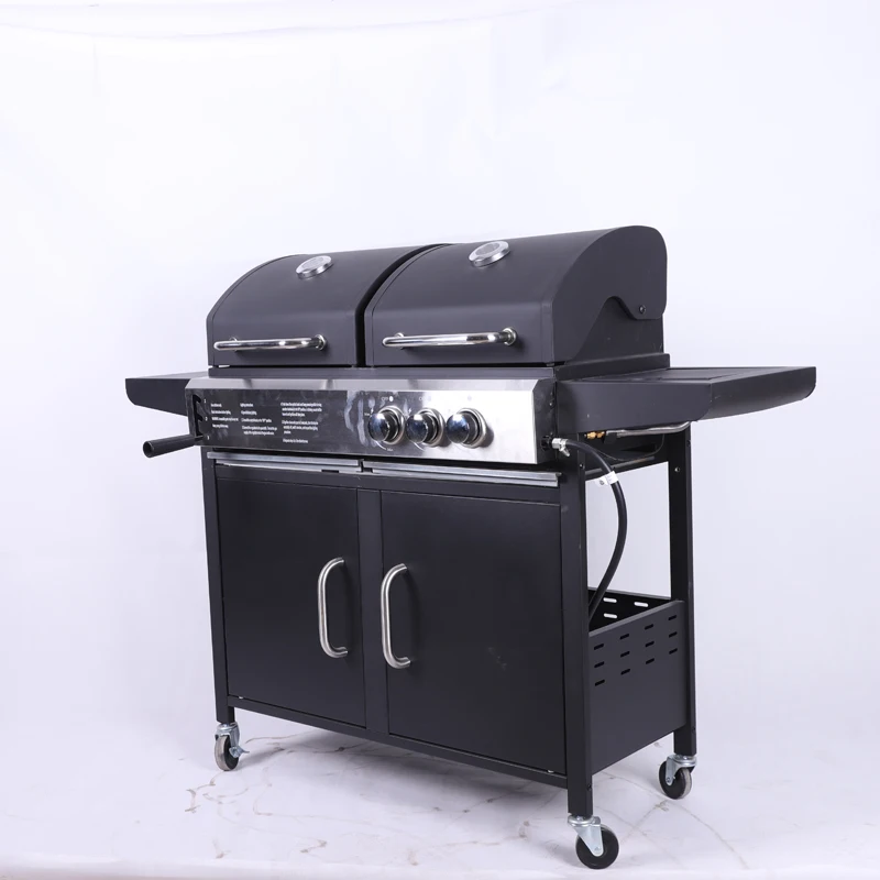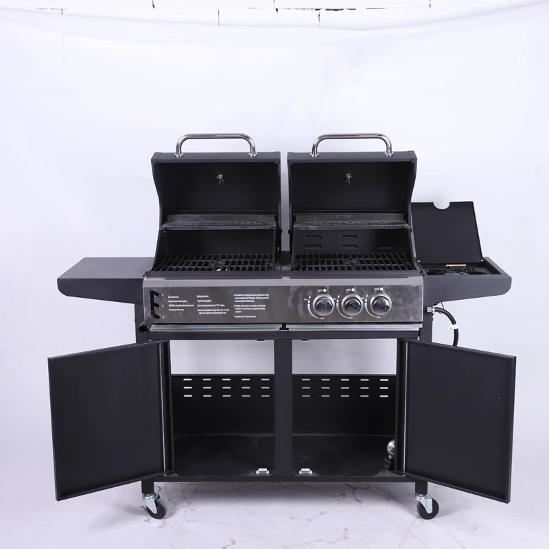 The grill's heavy-duty construction ensures consistent performance under demanding operational conditions while maintaining the authentic flavor profile that only charcoal grilling can deliver. The integrated cabinet storage system provides essential organization capabilities for grilling tools, charcoal supplies, and accessories, streamlining the cooking process and maintaining a professional workspace. The foldable side table feature adds valuable preparation space that can be expanded when needed and folded away for compact storage or transport.