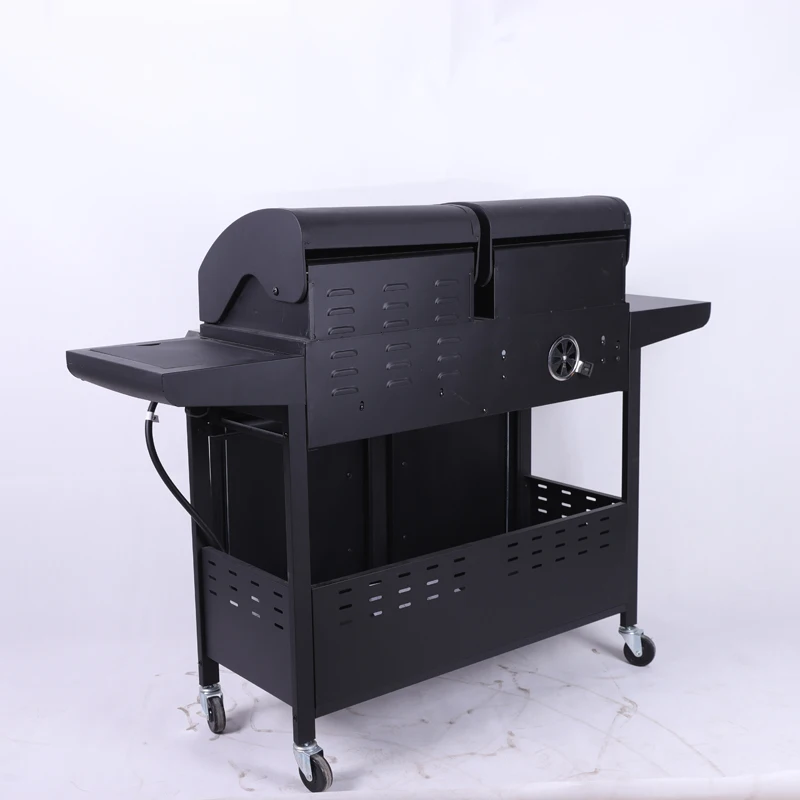 The Factory Price Heavy Duty Barbecue Grill With Cabinet and Foldable Side Table represents a comprehensive outdoor cooking solution designed specifically for commercial applications and large-scale residential use. This movable charcoal grill system combines robust construction with practical functionality, making it an ideal choice for restaurants, catering services, outdoor event venues, and hospitality businesses that require reliable grilling equipment for serving multiple guests simultaneously.