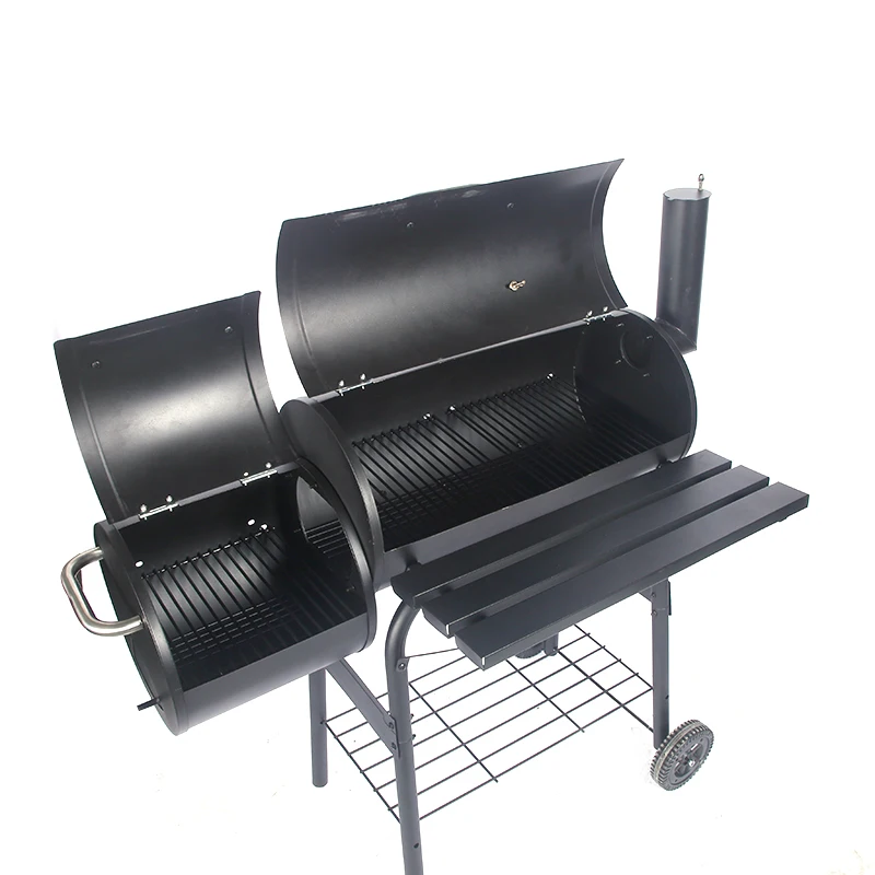 The portable design architecture emphasizes mobility without compromising cooking capacity, making it an ideal choice for camping expeditions, backyard gatherings, tailgating events, and commercial outdoor food service applications. The unit's construction incorporates durable materials that withstand repeated use while maintaining consistent heat distribution throughout the cooking surface. The charcoal and wood fuel compatibility provides users with flexibility in fuel selection, enabling authentic smoky flavors that enhance food quality and customer satisfaction.
