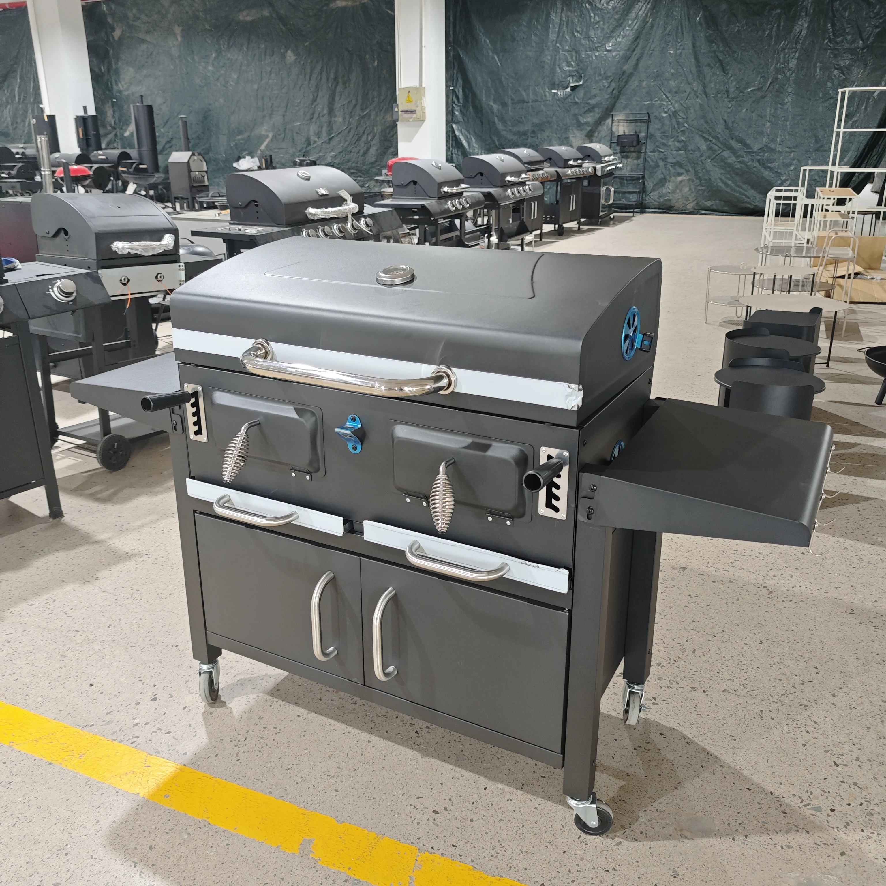 Constructed with robust materials and engineered for durability, this barbecue system features spacious cooking surfaces that accommodate large quantities of food simultaneously. The thoughtful design incorporates practical elements such as heat-resistant handles, secure locking mechanisms, and strategic ventilation ports that enhance both functionality and user safety. Our company's extensive experience in outdoor cooking equipment development ensures reliable performance and long-term value for professional and recreational users seeking premium barbecue solutions.