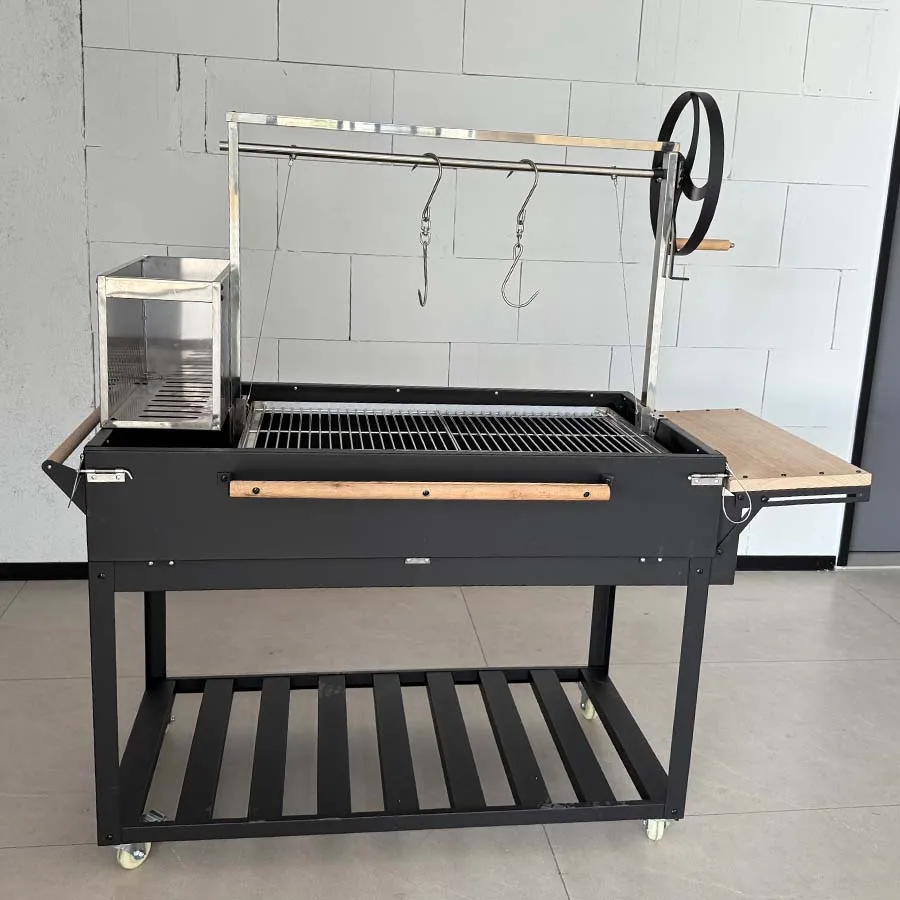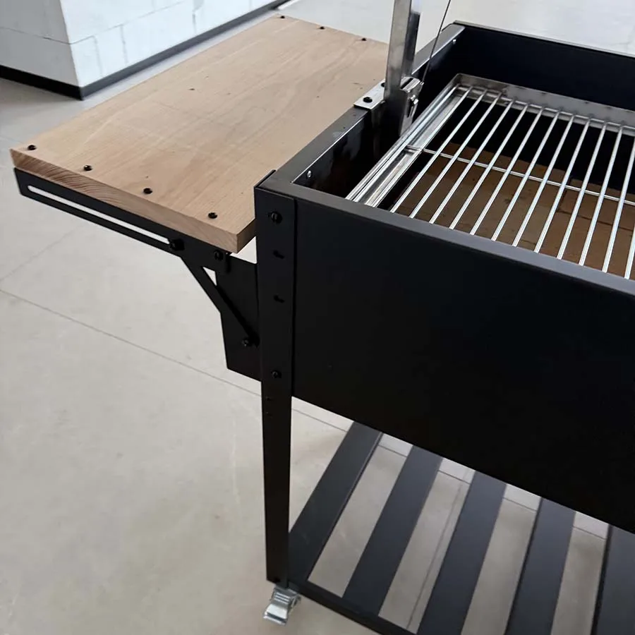 Elevate your outdoor cooking experience with this professional-grade Argentine-style BBQ grill, designed for serious barbecue enthusiasts. The robust steel construction and Santa Maria style cooking mechanism allow precise height adjustment for perfect temperature control, while the powder-coated finish ensures long-lasting durability and weather resistance. The thoughtfully designed wind guard protects your flames from gusty conditions, maintaining consistent heat for even cooking results. The convenient side table provides ample workspace for food prep and serving. Perfect for entertaining large gatherings, this XL-sized grill offers plenty of cooking surface for multiple cuts of meat. Whether you're grilling traditional asado or hosting a backyard feast, this versatile charcoal grill delivers authentic Argentine barbecue flavor with modern convenience. Built to last and engineered for performance, it's an investment in countless memorable outdoor dining experiences.