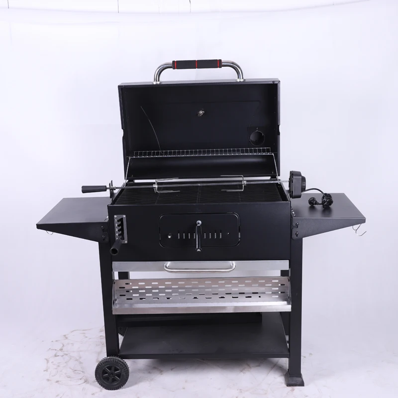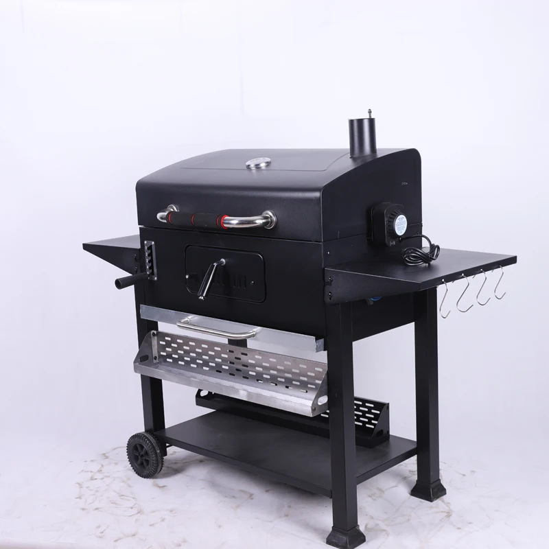 This New Arrival Garden Outdoor Trolley Barbecue represents a comprehensive grilling solution designed specifically for commercial outdoor cooking operations and hospitality venues. The unit combines traditional charcoal grilling capabilities with integrated smoker functionality, delivering versatile cooking options for diverse culinary requirements. The trolley design ensures mobility and convenience, allowing operators to position the grill optimally for service efficiency and guest experience.