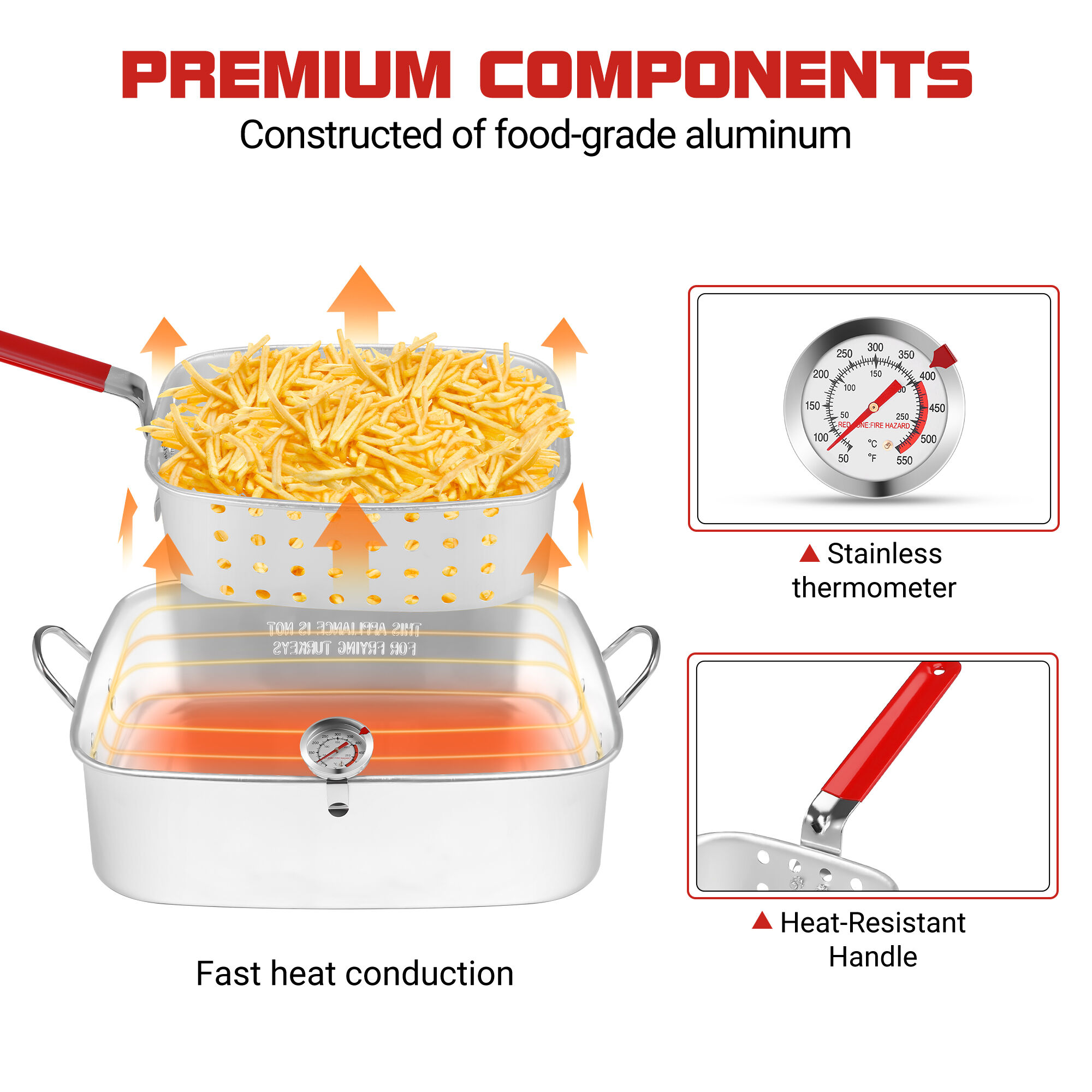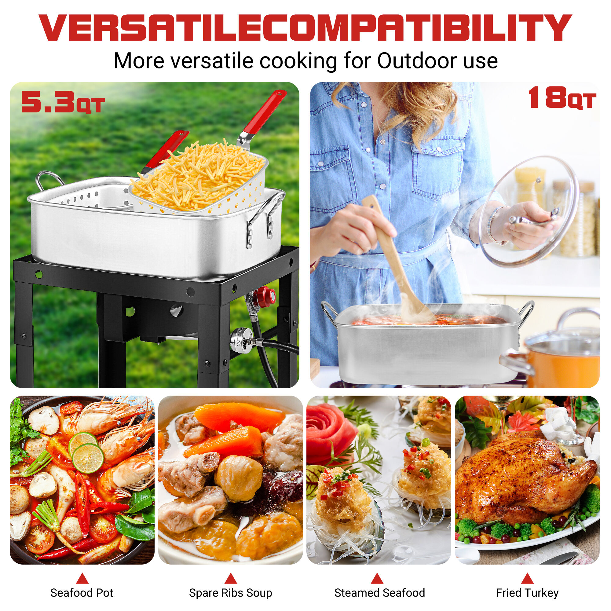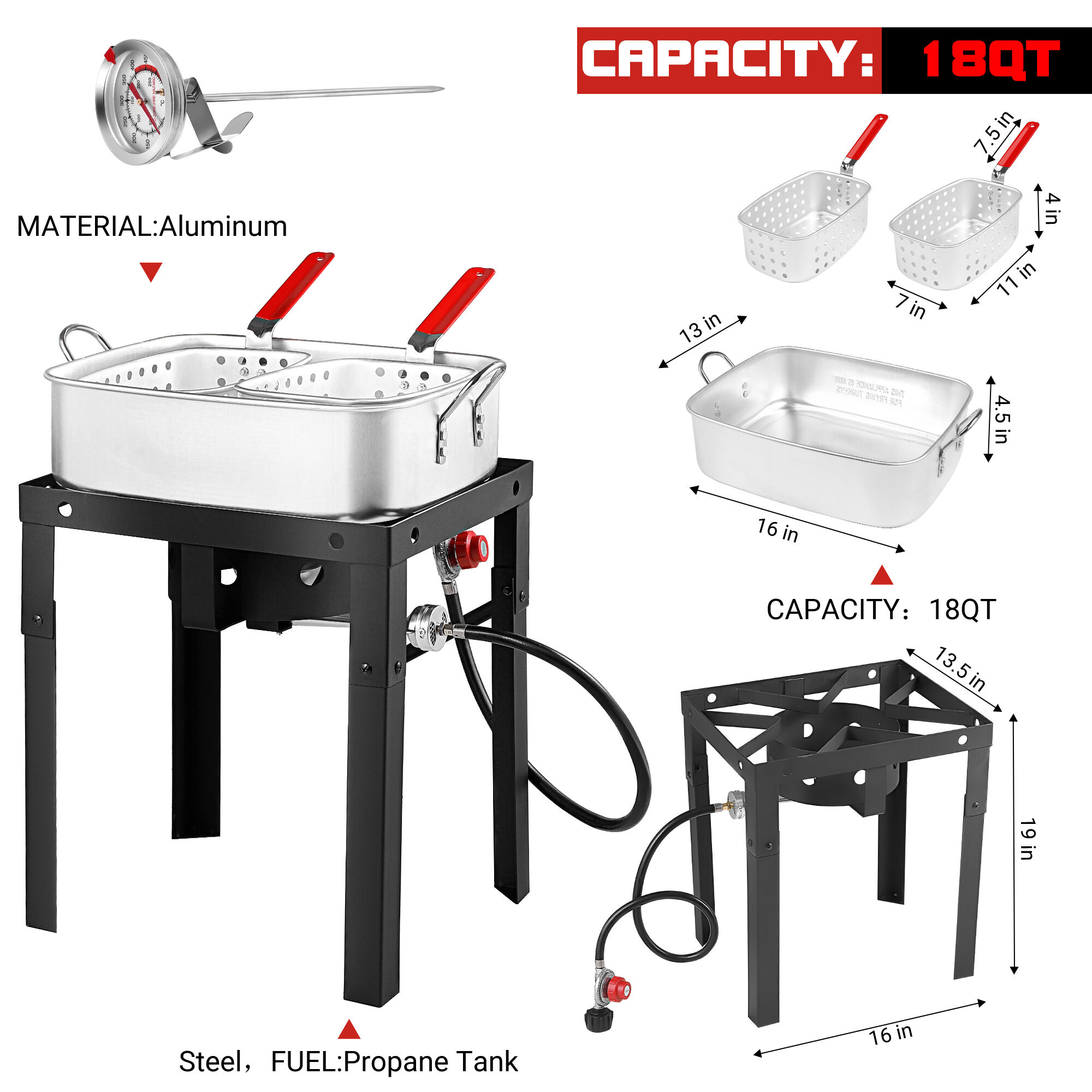 Versatile 18QT Outdoor Gas Fryer – Compatible with Propane Burners & Indoor Cooktops, Features Heat-Resistant Handles for Safe Handling, Perforated Baskets for Quick Draining, and Precise Temperature Monitoring, Perfect for Frying French Fries, Fried Chicken, Fried Turkey, Boiling Seafood, Steaming Dumplings & Other Delicious Dishes for Friends & Family